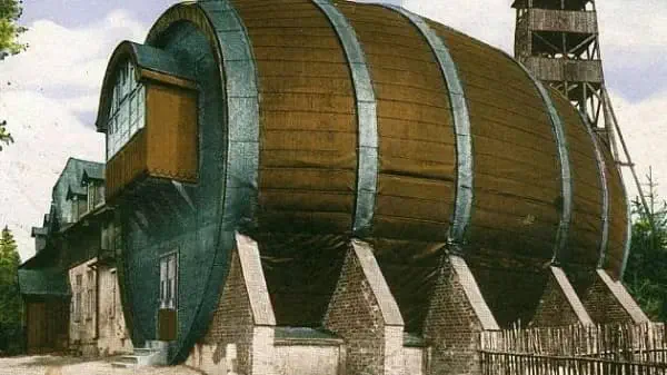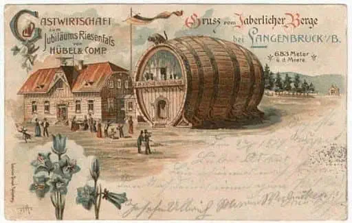 V roce 1898 se ve Vídni konala Jubilejní výstava k oslavě 50 let vlády Františka Josefa I. Na výstavě byl i sud obřích rozměrů. Ten zde sloužil jako vinárna. Návštěvníkem výstavy i této vinárny byl Wilhelm Huebel, hostinský z Dlouhých Mostů u Liberce. Nápad s vinárnou v sudu se mu zalíbil natolik, že přesvědčil několik svých přátel a po skončení výstavy sud za 600 zlatých zakoupili, rozebrali a na čtyřech vagónech převezli po železnici z Vídně do Liberce. Na počátku následujícího roku bylo započato s výstavbou restaurace, jejíž součástí se stal i obří sud.